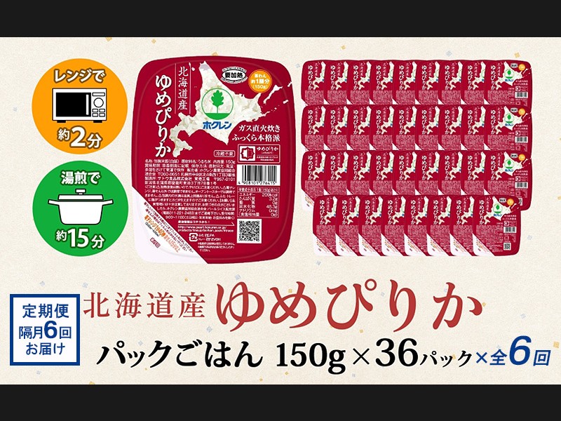定期便 隔月6回 北海道産 ゆめぴりか パックごはん 150g 36パック ホクレン 白米 ご飯 パック まとめ買...