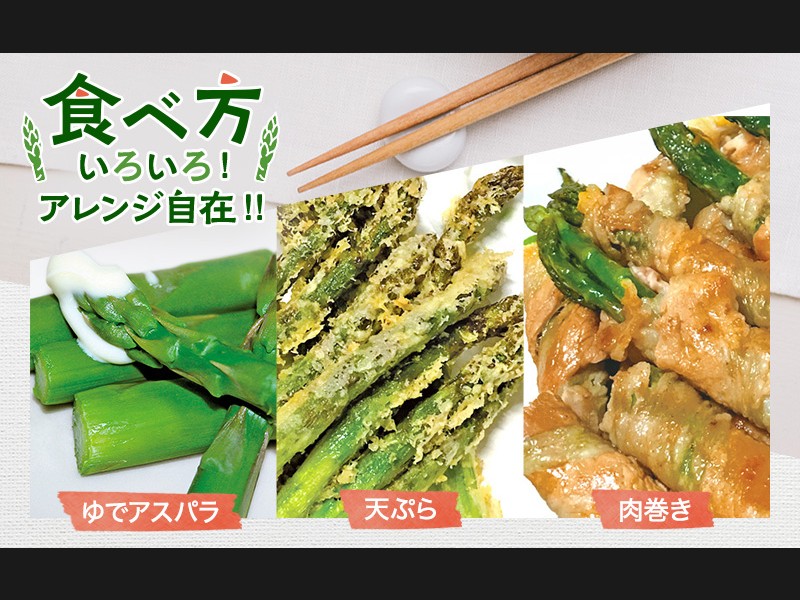 アスパラ本来の風味は炒め物や肉巻き、焼きそばなどに加えると、アスパラガスの香りを存分に楽しんでいただけます。繊細な食感と風味が料理を一層引き立てます。