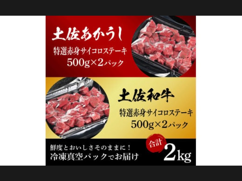 土佐あかうし&土佐和牛2種食べ比べ(500g×4パック)2キロ 2kg 特選赤身サイコロステーキ 特選 赤身 牛 ...