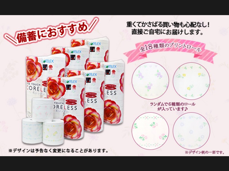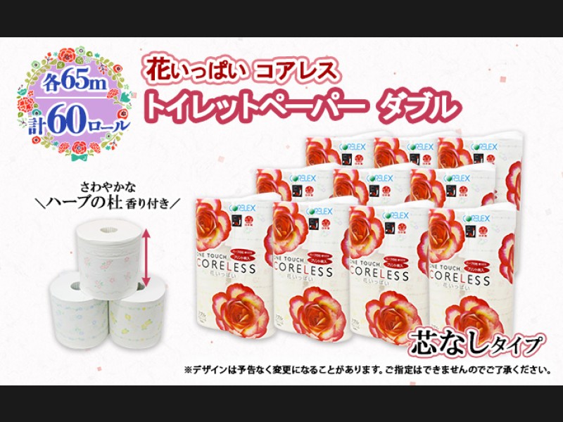 北海道 ワンタッチコアレス 花いっぱい トイレットペーパー 65m 60ロール ダブル 芯なし 全18種 花柄 ...