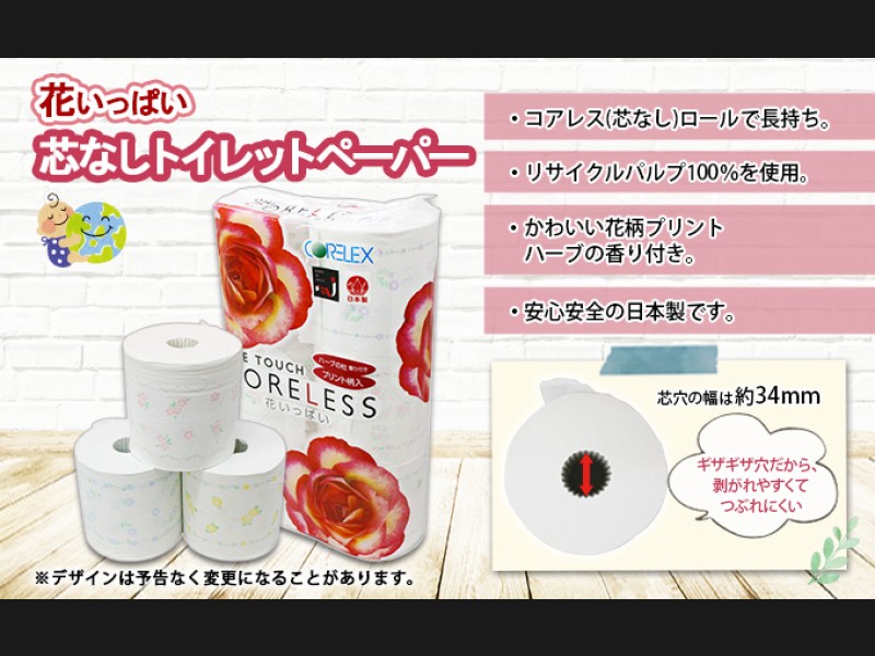 コアレスロールは芯がないため、ゴミも出ない、長く使えて補充頻度も約半分に!