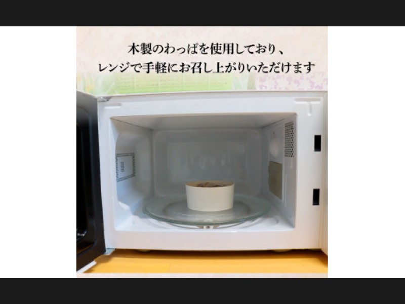 木製のわっぱを使用しており、レンジで手軽にお召し上がりいただけます。