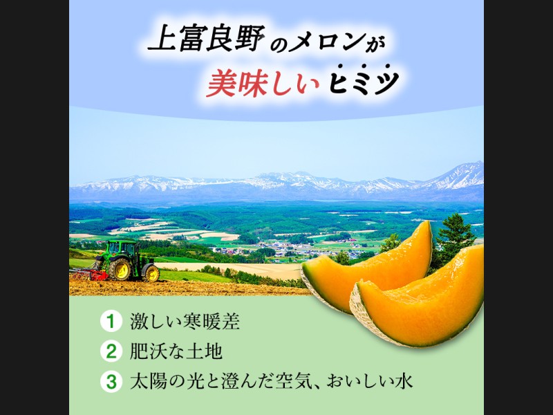 それでも幸せの笑顔を届けたいからと妥協を許さず作り上げた上富良野の「ふらのメロン」です。