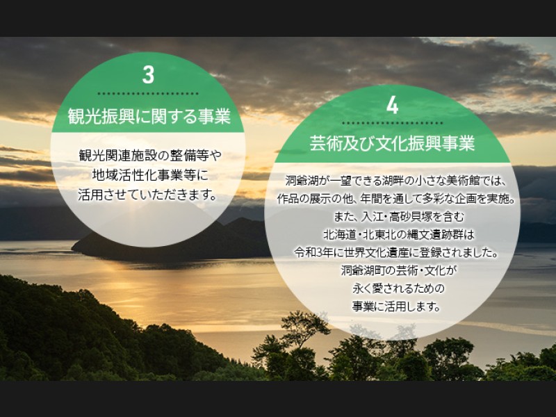 いただいたご寄附は、洞爺湖町の発展のために活用させていただきます。