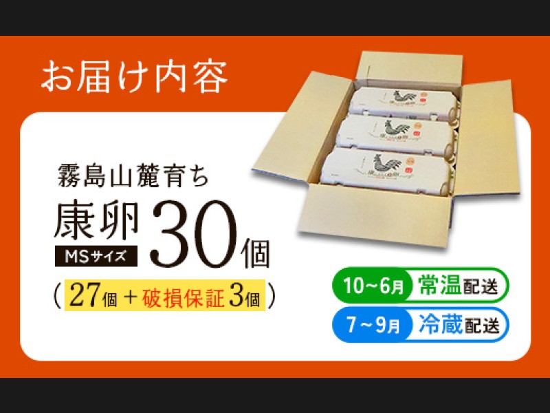 【ふるさと納税】卵 霧島山麓育ち こだわり卵 康卵 計 30個(27個 + 割れ保証 3個)たまご 玉子 卵焼き ...