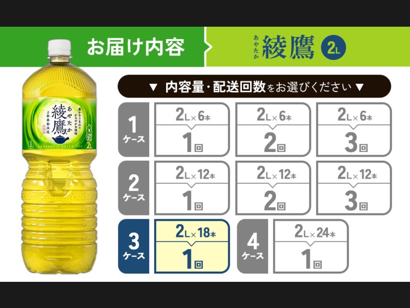 綾鷹 2L PET【コカ・コーラ】ペットボトル 3ケース(18本)セット お茶 緑茶 日本茶 茶葉 送料無料