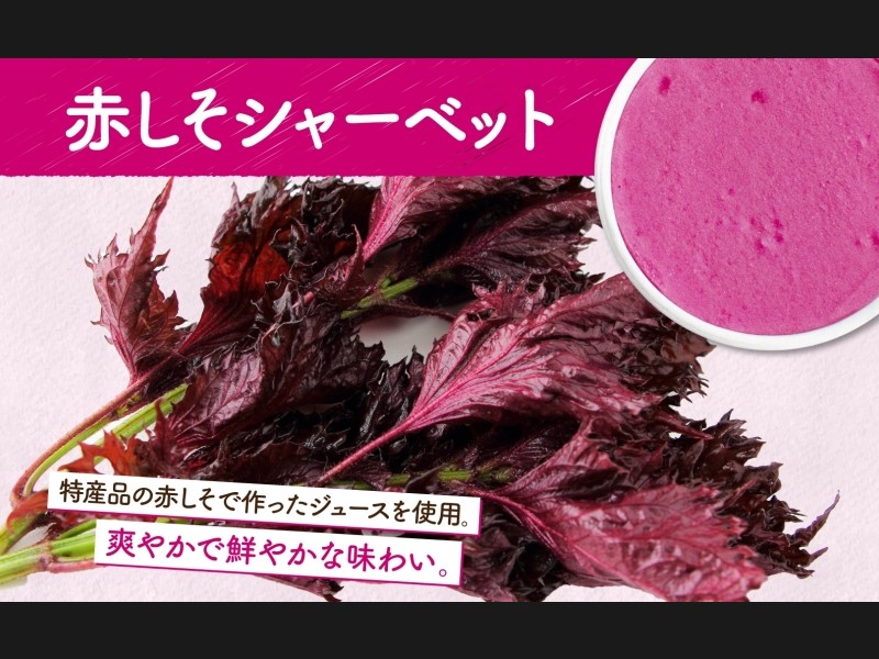 そのシソでジュースを作り、オリジナルのジェラートにしました。