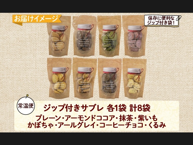 北海道 サブレ 8種 各8枚入りジップ付き 手作り クッキー 焼き菓子 詰め合わせ かわいい おやつ スイー...