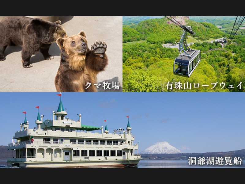 洞爺湖遊覧船・有珠山ロープウェイ・クマ牧場の3つのチケットが付いています♪