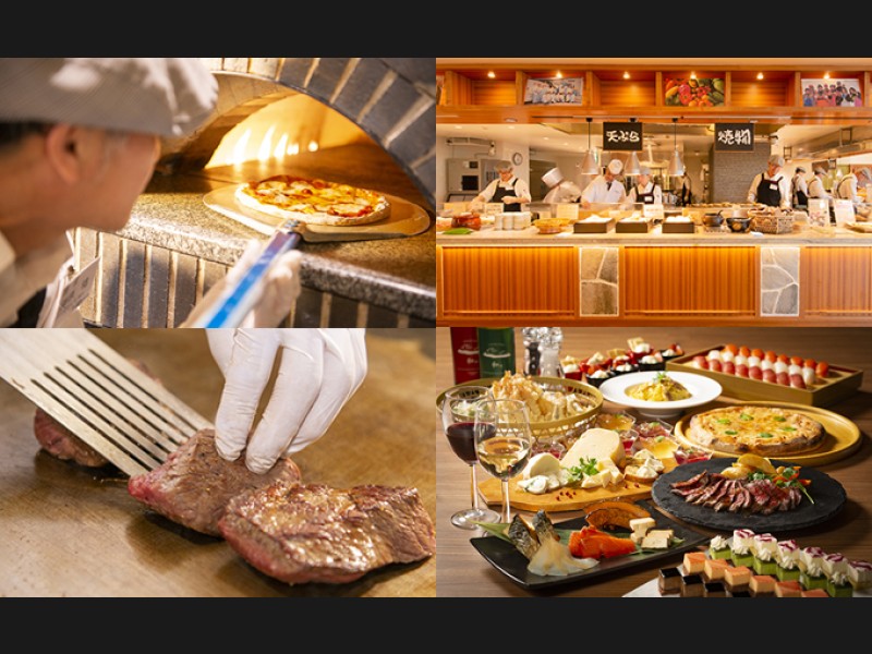 ホテル夕食は約90種類の和洋中ビュッフェレストラン!目の前で調理をするライブキッチンでは出来立てのお料理を提供♪