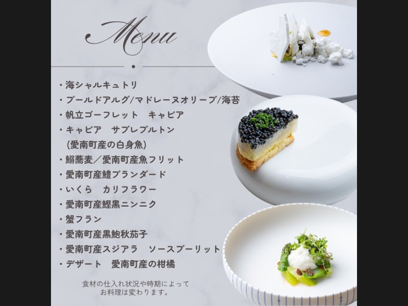相原シェフ自らが愛南町の一次生産者の現場を訪れ目利きした厳選食材をフルに活用した特別コースです。