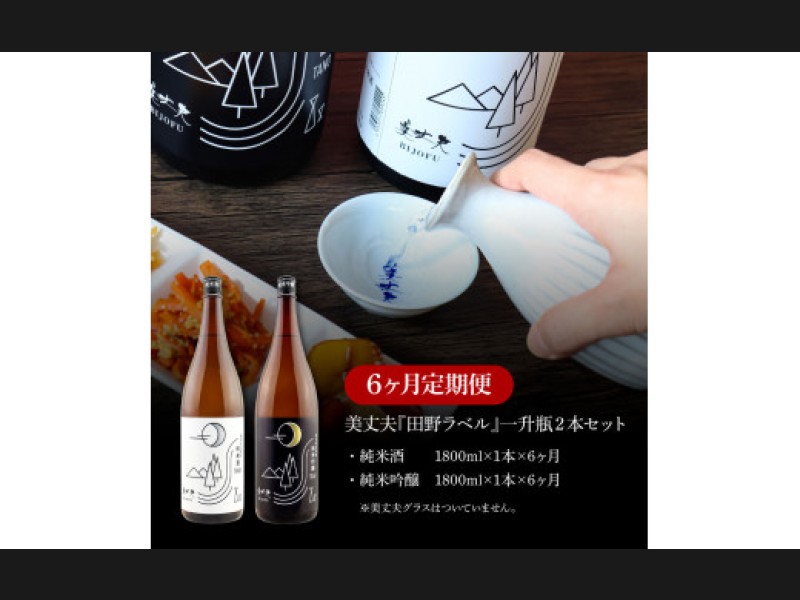 「ふるさと納税限定品」の美丈夫『田野ラベル』一升瓶2種×各1本セットを月1回6ヶ月間お届けする定期便です。