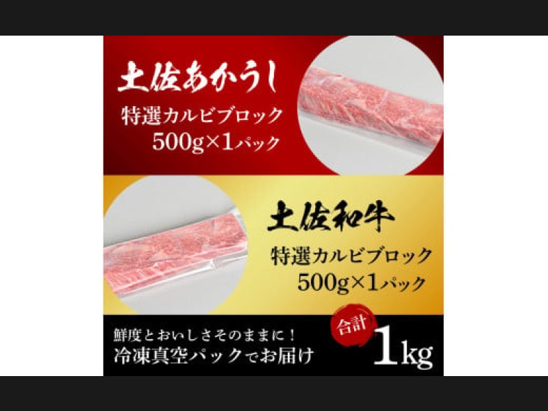 土佐あかうし&土佐和牛2種食べ比べ(500g×2パック)1キロ 1kg 特選カルビブロック 特選 カルビ ブロッ...