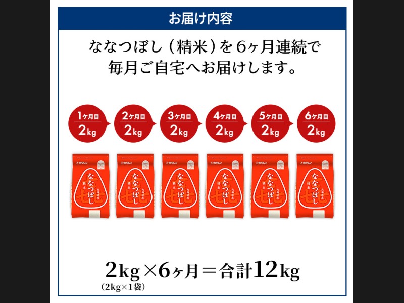 サイズ: ホクレン喜ななつぼし精米2kg(2kg×1袋)を6ヵ月間お届けいたします。