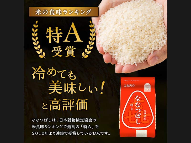 ななつぼしは、日本穀物検定協会主催の食味ランキングにおいて、2010年より連続で特Aを獲得しています。