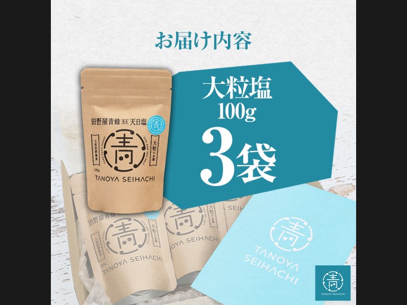 塩職人・田野屋青蜂が作る完全天日塩の大粒を3個セットにしました。