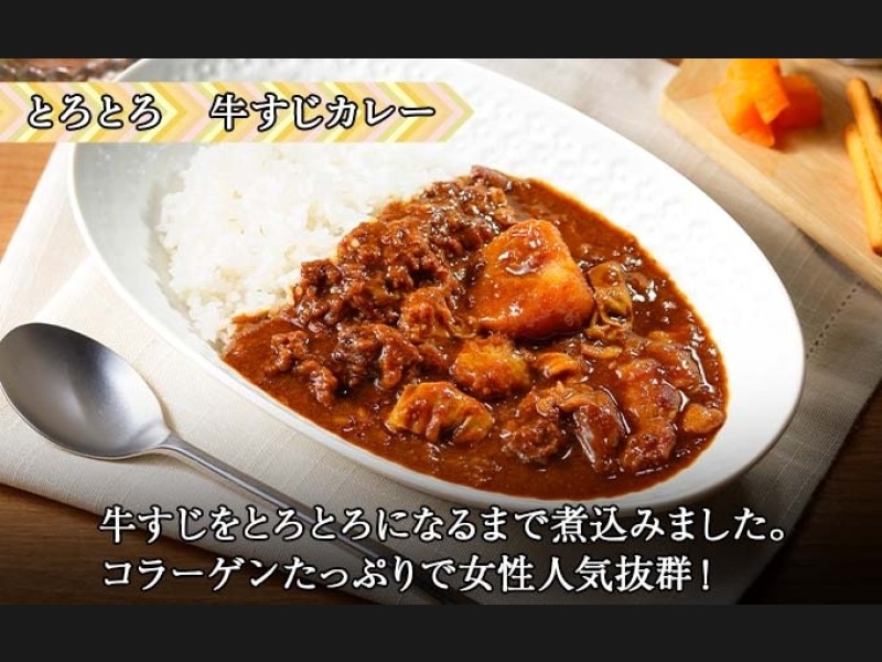 選りすぐりの牛すじ肉と、北海道産の野菜をじっくり煮込んだトロトロの牛すじカレー。