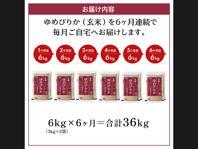 サイズ: ホクレンゆめぴりか玄米6kg(3kg×2袋)を6ヵ月間お届けいたします