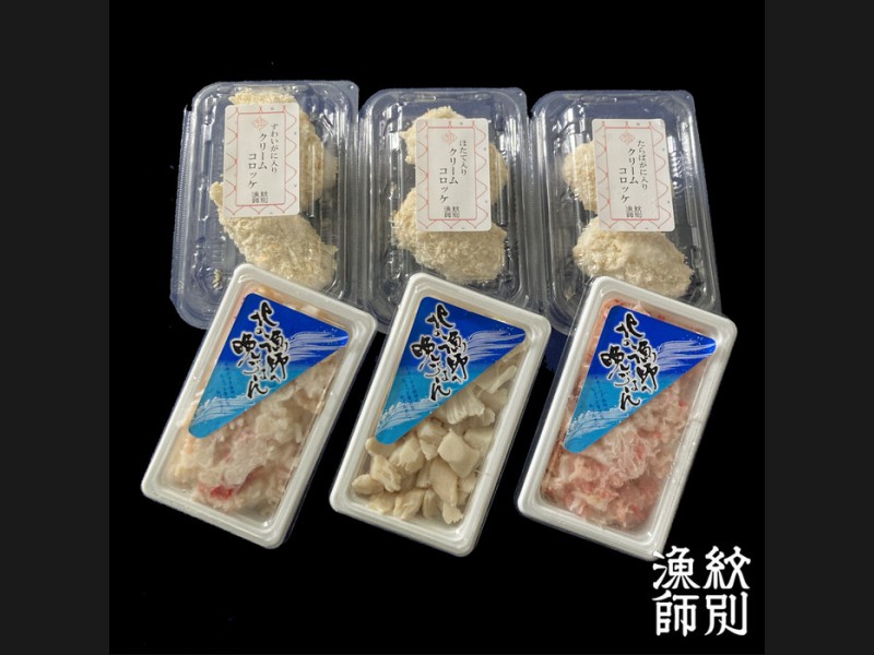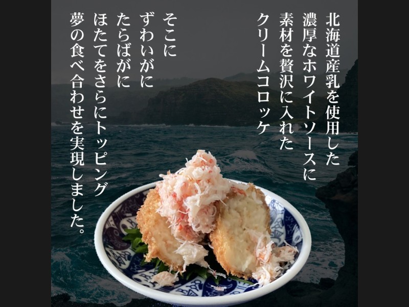 サイズ: ずわいがに、たらばがに、ほたて各100g、ずわいがに、たらばがに、ほたてクリームコロッケ各50g×各2個