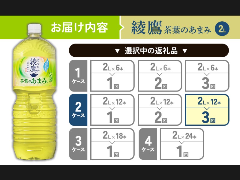 【3回定期便】綾鷹 茶葉のあまみ 2L PET【コカ・コーラ】ペットボトル 2ケース(12本)定期便 3回(36本) ...