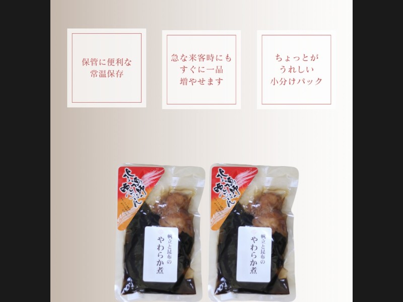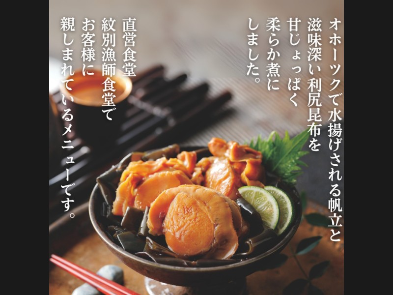10-538 【お手軽調理】帆立と昆布のやわらか煮 ハーフサイズ2個【紋別漁師食堂】【化粧箱入り】