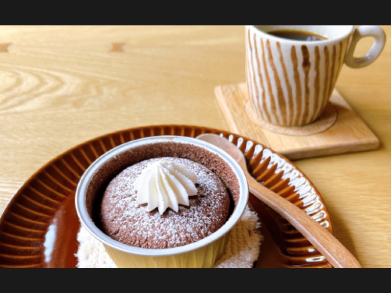 解凍後すぐに召し上がれるように、生クリームを添えたカップタイプをご用意しました。カカオ72%のオーガニッククーベルチュールチョコレートとココアを使用し、洋酒を効かせ、低温でしっとり焼き上げた大人のチョコレートケーキです。