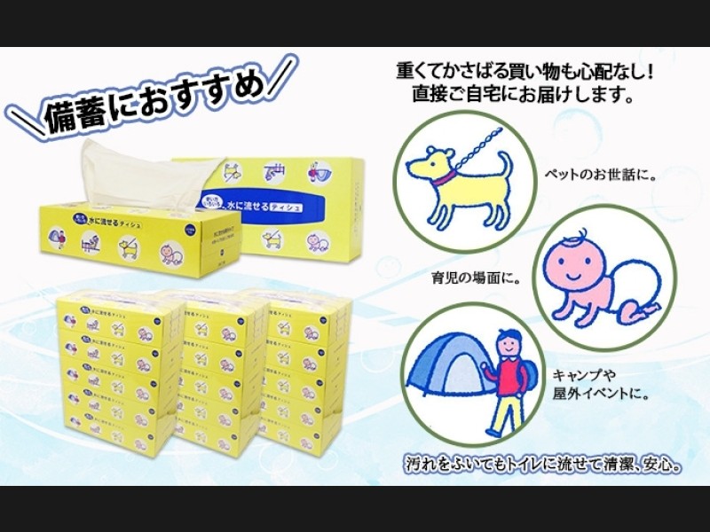 水に流せるティッシュなのでゴミ捨てがらくらく、