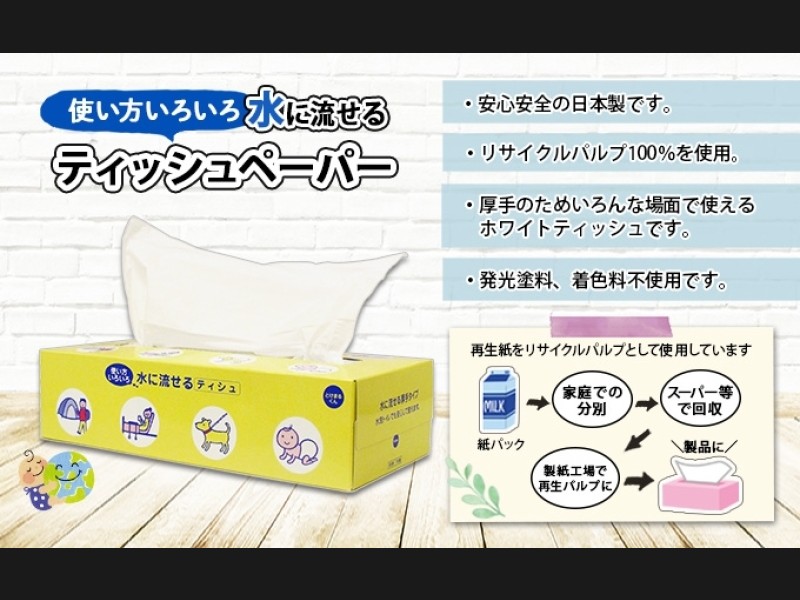 リサイクルパルプ100%で環境にもやさしい、安心安全の日本製です。