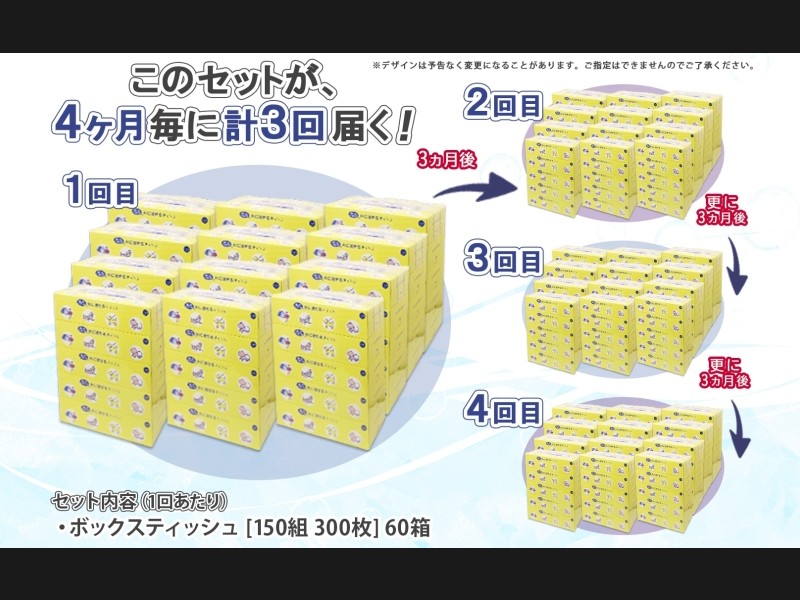 北海道 定期便 3ヵ月毎 全4回 とけまるくん 水に流せる ティッシュ 150組 計60箱 ティッシュペーパー ボ...