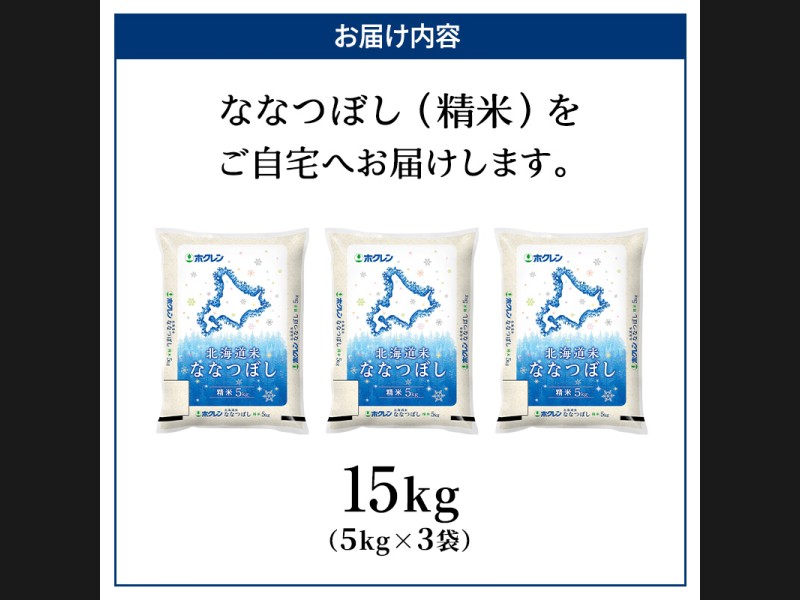 (精米)ホクレン北海道ななつぼし15kg(5kg×3袋)をお届けします。