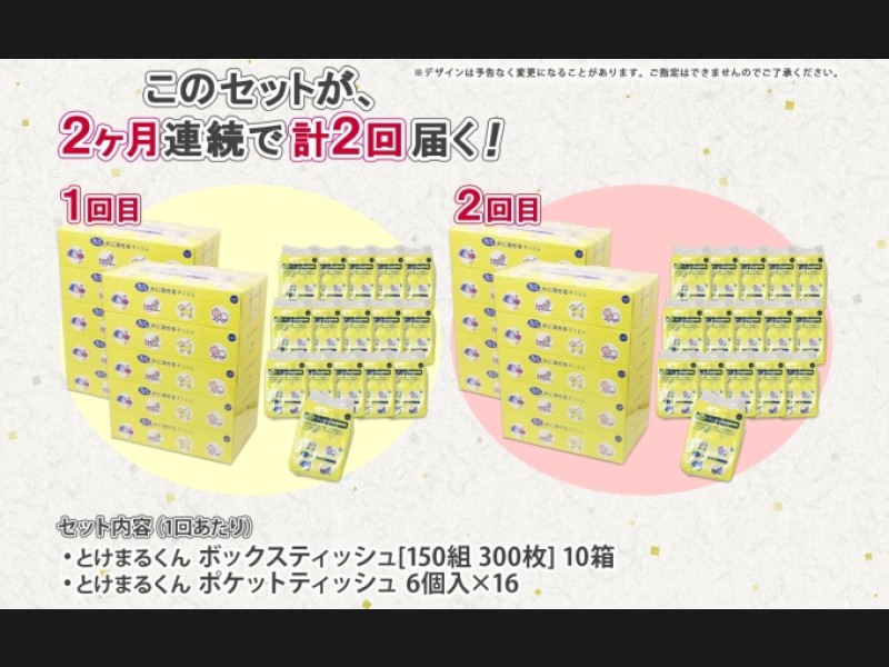 定期便 2カ月連続2回 北海道産 とけまるくん ボックスティッシュ 10箱 ポケットティッシュ 96個 セット ...