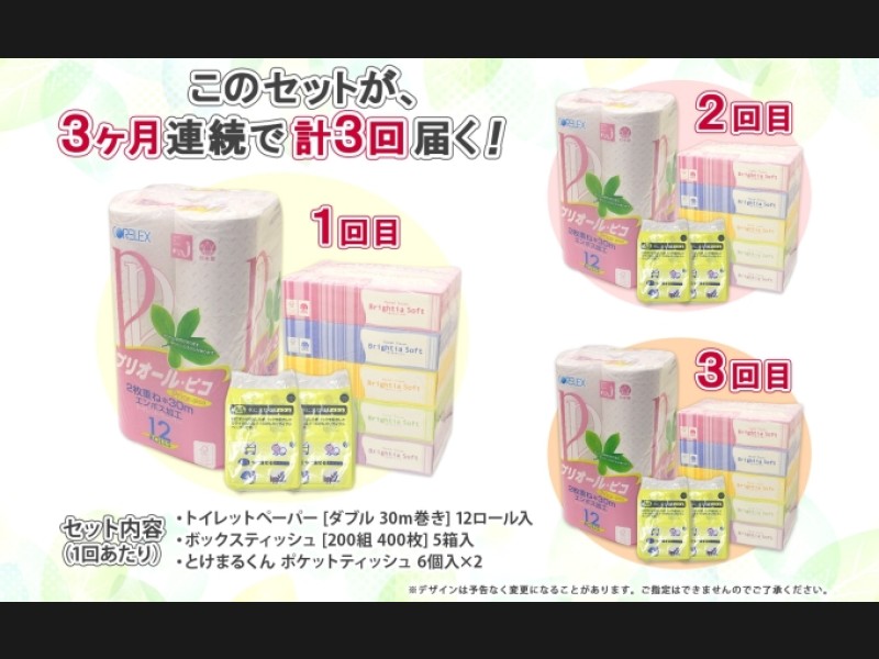 3ヶ月連続3回 定期便 トイレットペーパー ダブル 30m 12ロール ティッシュペーパー 200組 5箱 ポケット...