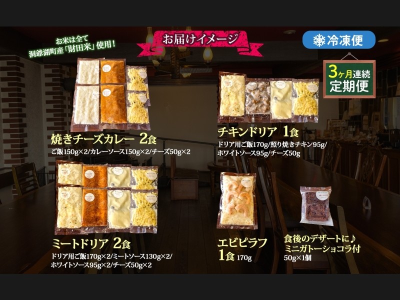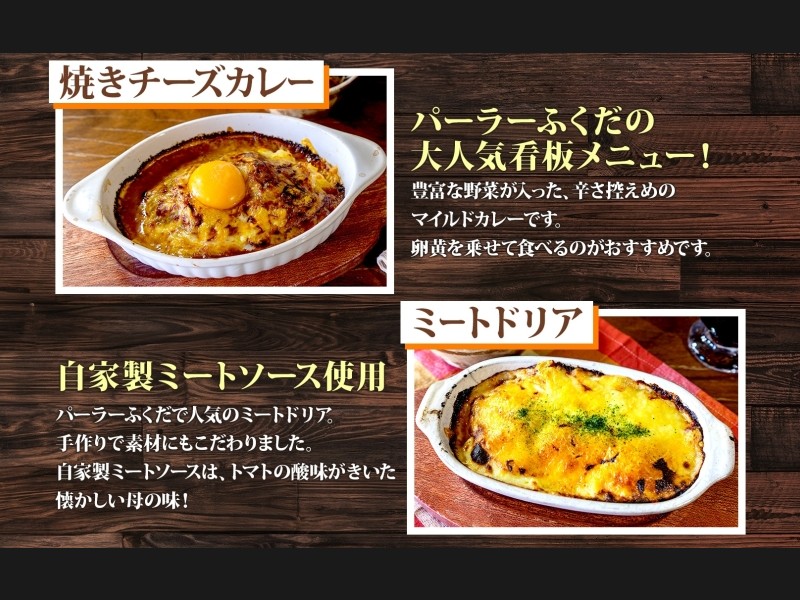 定期便 3カ月連続 パーラーふくだ特製 焼きチーズカレー 2食 ミートドリア 2食 伊達産鶏の照り焼きチキ...