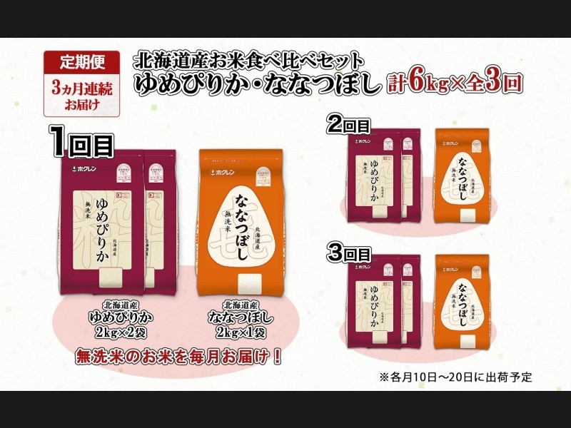 定期便 3ヵ月連続3回 北海道産 ゆめぴりか 喜ななつぼし 食べ比べ セット 無洗米 計6kg 米 特A 白米 お...