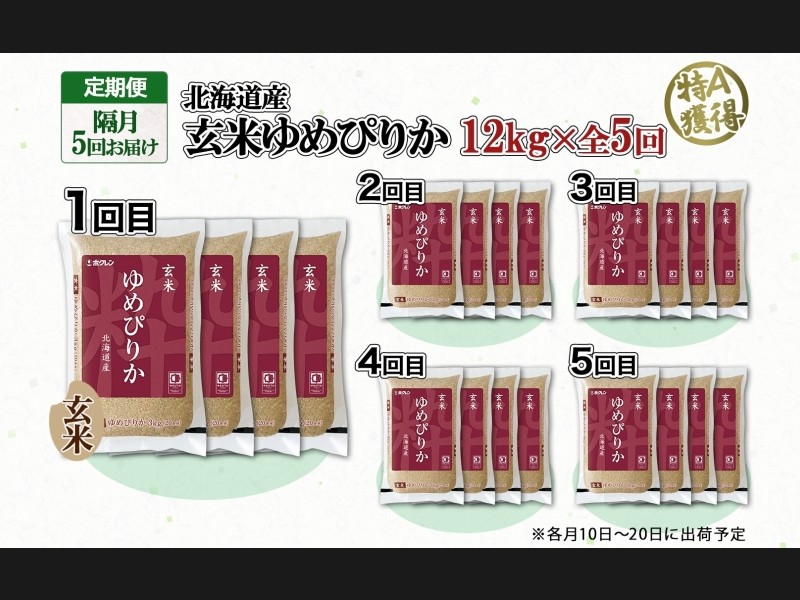 定期便 隔月5回 北海道産 ゆめぴりか 玄米 12kg 米 特A 獲得 小分け お米 12キロ 3kg × 4袋 北海道米 お...