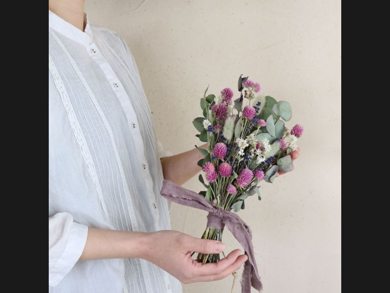 ライラックピンクの千日紅に富良野産ラベンダーがかわいいドライフラワーブーケ♪