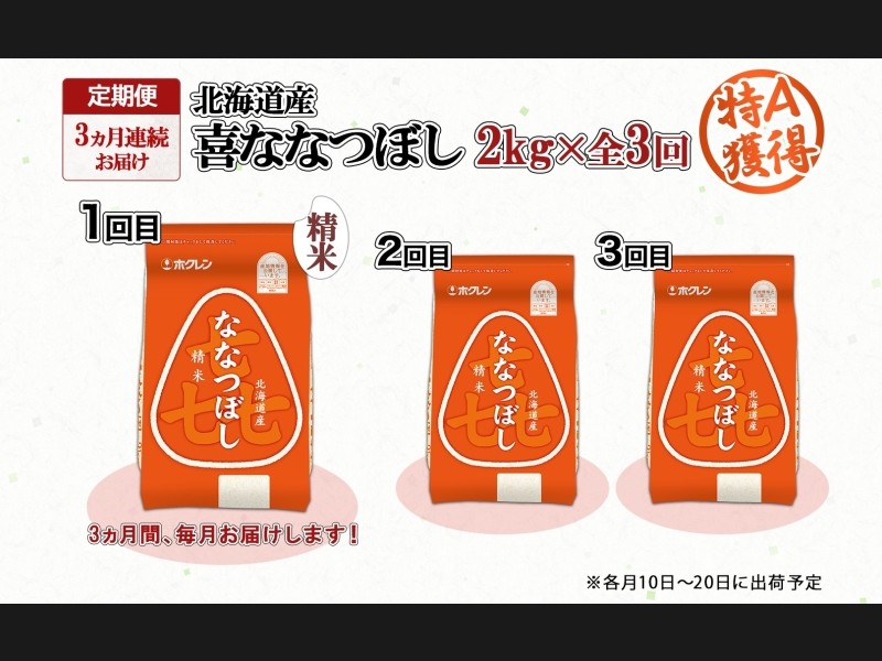 定期便 3ヵ月連続3回 北海道産 喜ななつぼし 精米 2kg 米 特A 白米 お取り寄せ ななつぼし ごはん ブラ...