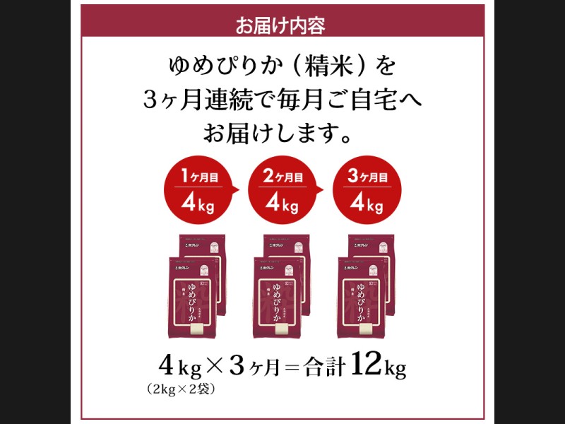 サイズ: ホクレンゆめぴりか精米4kg(2kg×2袋)を3ヵ月間お届けいたします