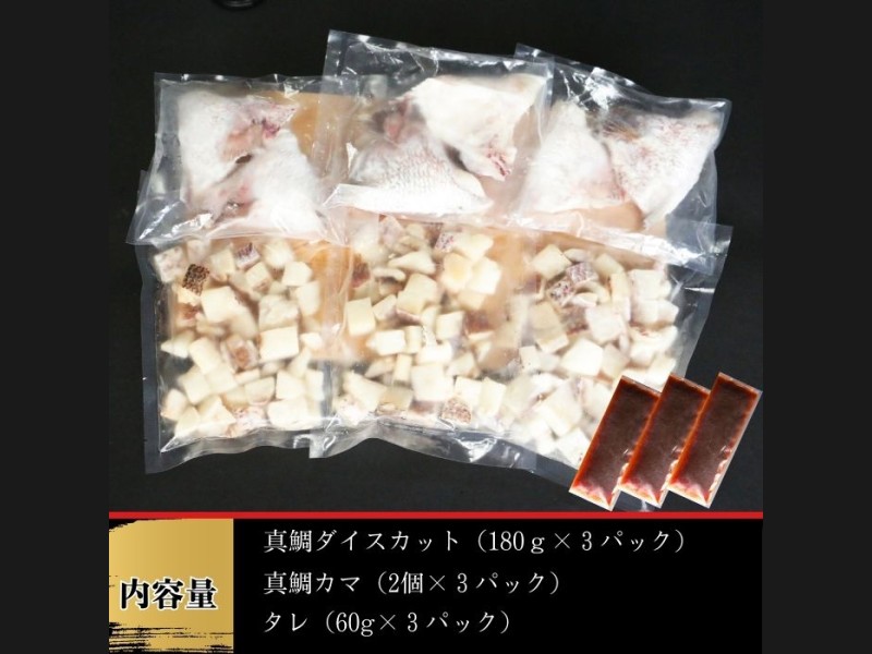 鯛めしセット (180g×3パック) カマ付き まだい 鯛 冷凍 ダイスカット サイコロ コロコロ 角切り 鯛...