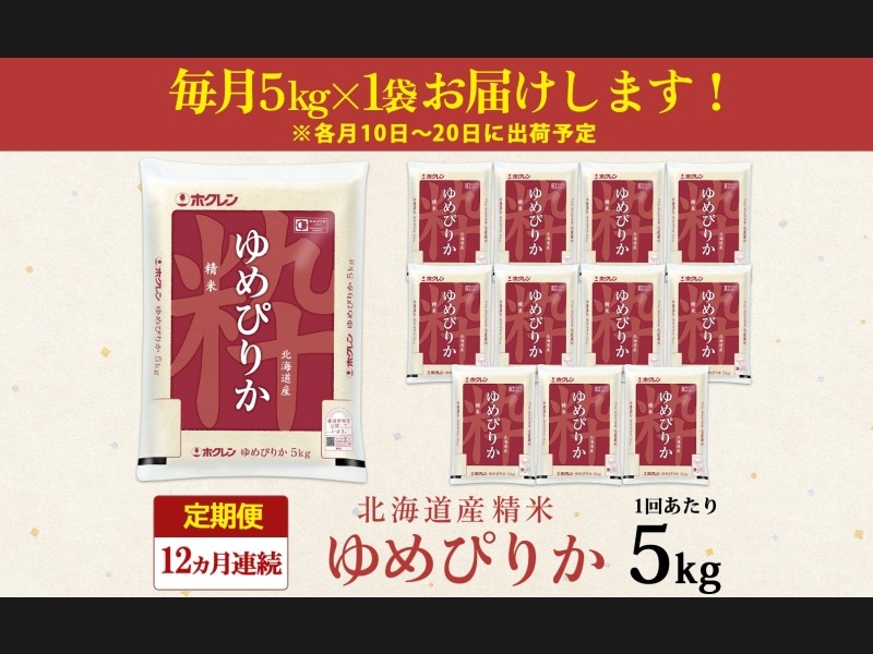定期便 12ヶ月連続12回 北海道産 ゆめぴりか 精米 5kg 米 特A 白米 お取り寄せ ごはん 道産米 ブランド...