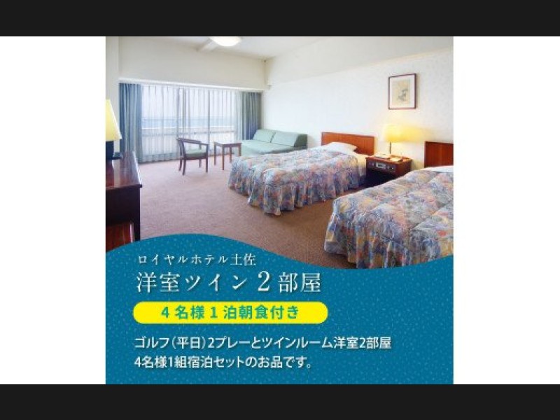 高知県でも有数の名門ゴルフ場 Kochi 黒潮カントリークラブ「平日1プレー」&土佐カントリークラブ「平日1プレー」と、Royal Hotel 土佐の1泊朝食付きの宿泊プラン4名様分がセットになった商品です。