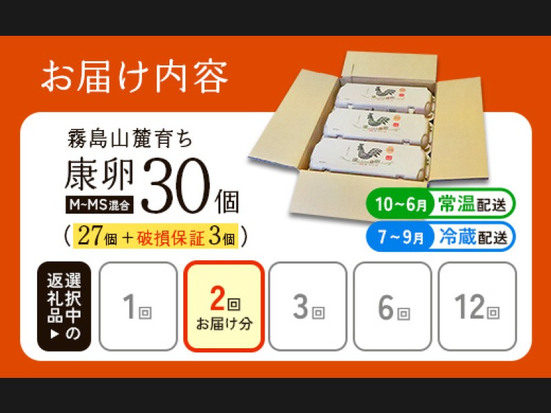 卵【2回定期便】霧島山麓育ち こだわり卵 康卵 計 30個(27個 + 割れ保証 3個)2回 計 60個(54個 + 割...
