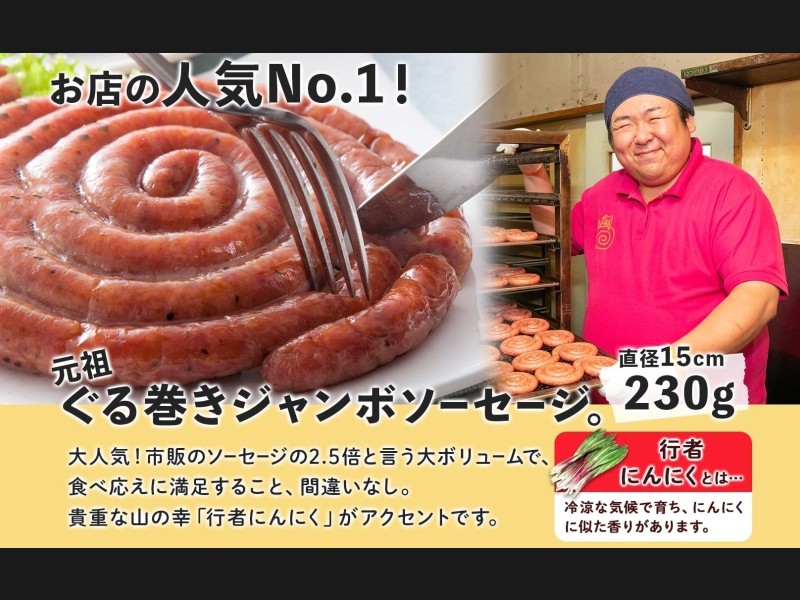 ■元祖ジャンボぐる巻きソーセージ(行者にんにく入)