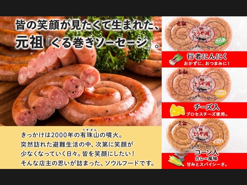 たどころの「元祖ぐる巻きソーセージセット」を北海道洞爺湖町より届けします。