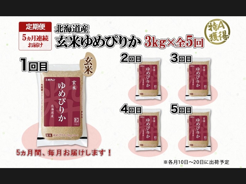 定期便 5ヵ月連続5回 北海道産 ゆめぴりか 玄米 3kg 米 特A 獲得 お取り寄せ ごはん 道産米 ブランド米 ...