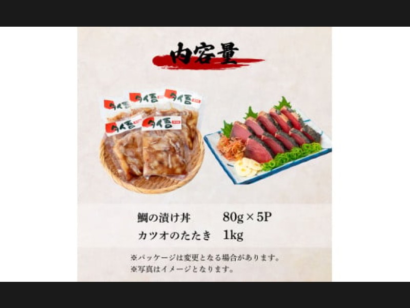 ~四国一小さなまち~ 訳あり 鯛の漬け丼(80g×5P)&カツオのたたき(1kg) タイ たい 鰹 かつお 1キロ 海...