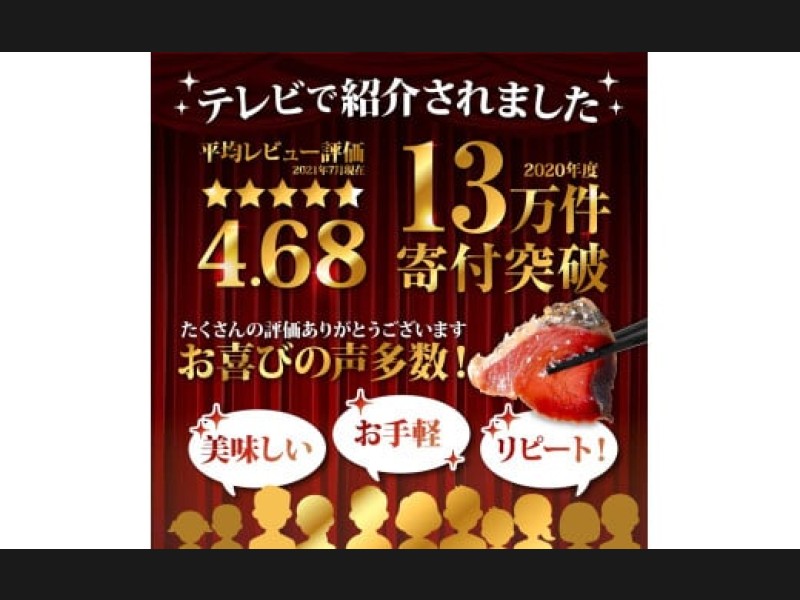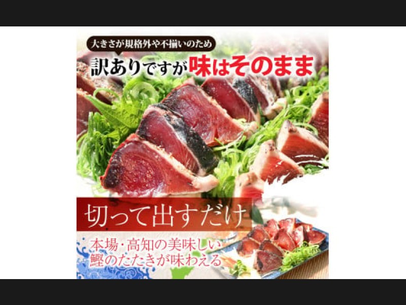 藁焼きによる香ばしい香りとジューシーな肉質が特徴のカツオ。 急速冷凍技術で鮮度を保ち、脂の乗ったカツオを堪能できます。規格外でもしっかりとした品質です。
