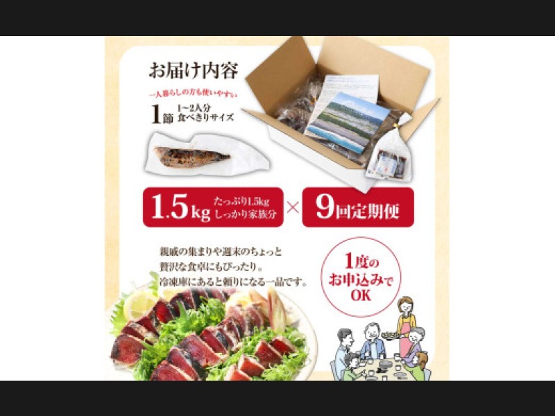 ・訳ありカツオのたたき 1.5kg×9回(9ヶ月定期便)