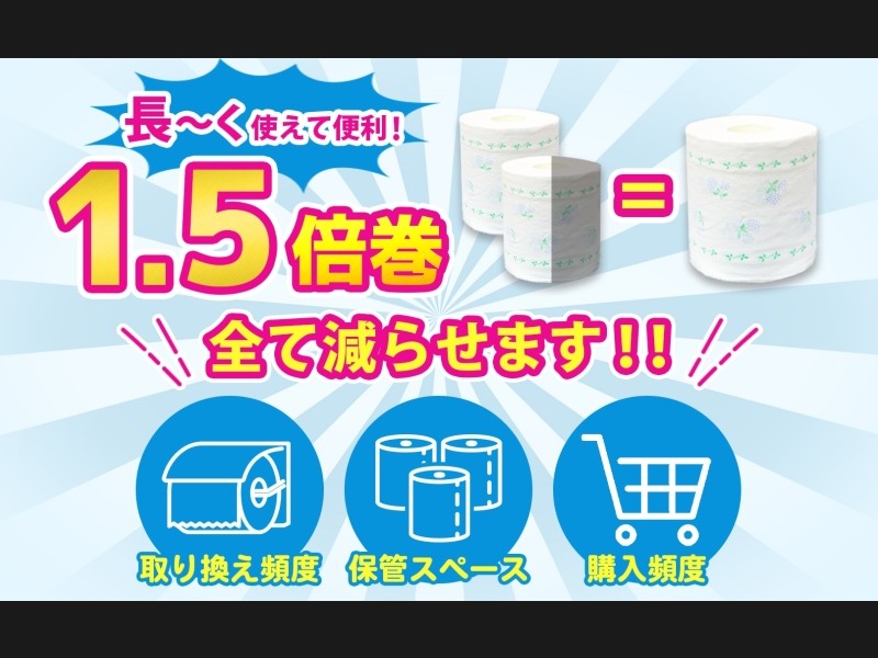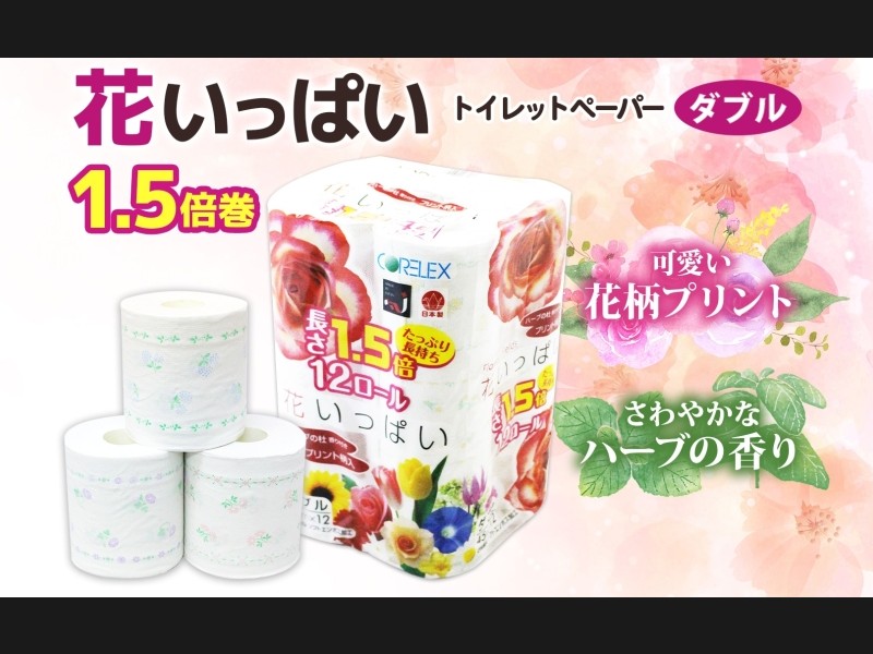 人気の「花いっぱいトイレットペーパー」から長持ちの1.5倍巻きが登場!