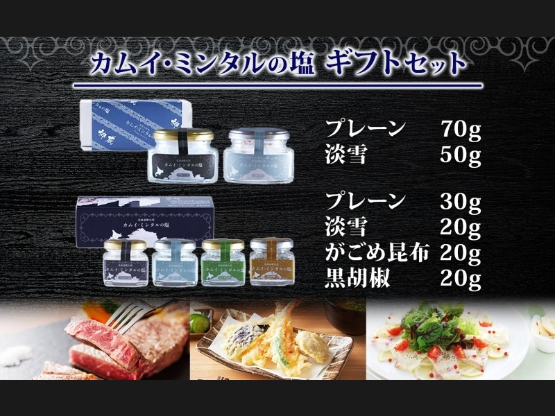 北海道洞爺湖町より、カムイ・ミンタルの塩4種ギフトセット。